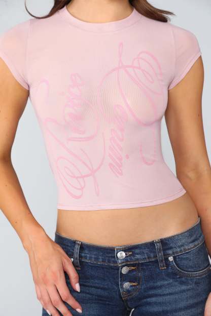 Say it soft, say it bold. Our Adriana Tee is the ultimate lover-girl staple—delicate enough to feel dreamy, cheeky enough to turn heads. With a flirtatious script front and just the right amount of see-through, this top is your new go-to for layering, lounging, or catching your crush's attention. Pair it with your favorite denim, mini skirts, or nothing but confidence.