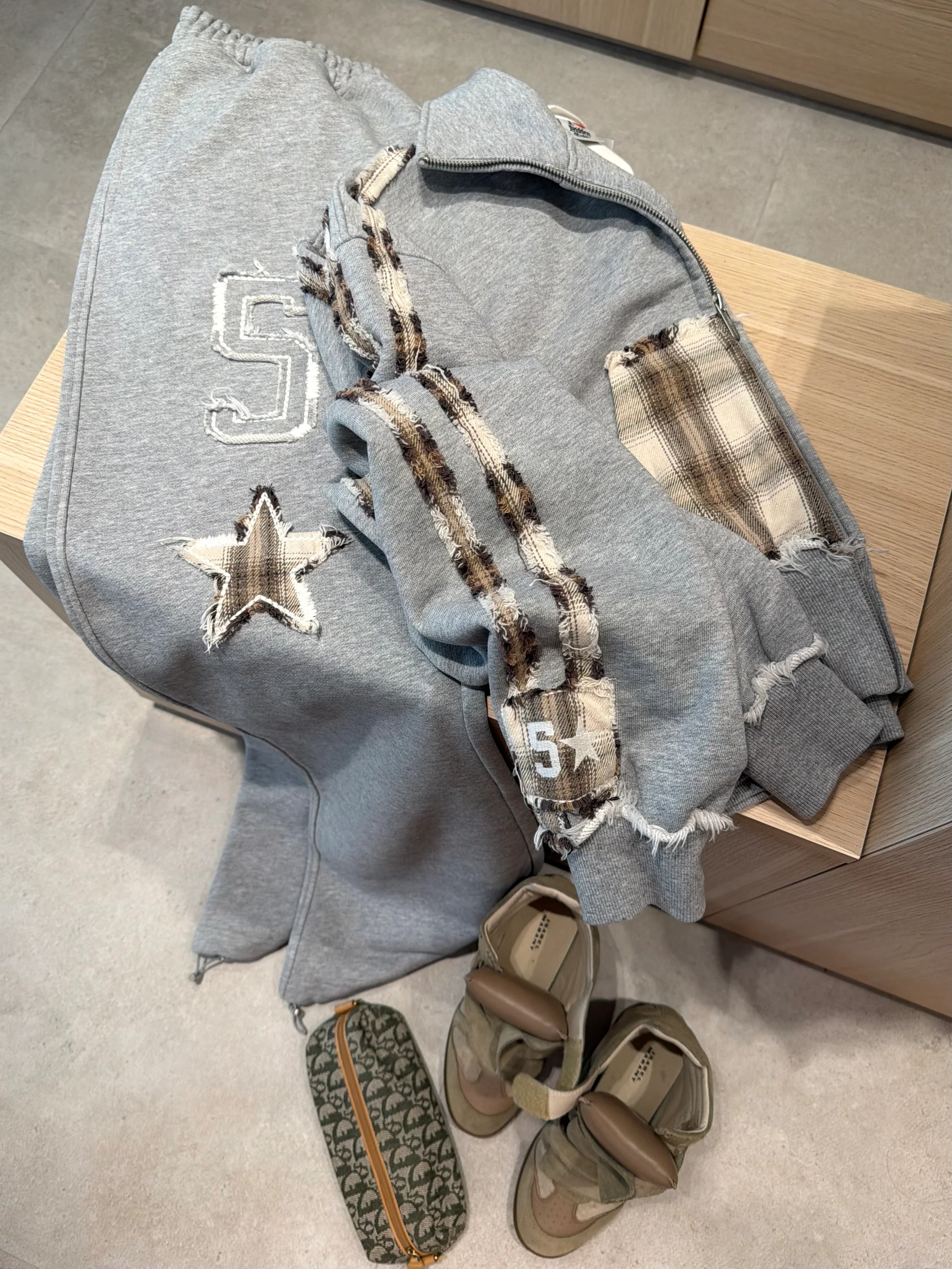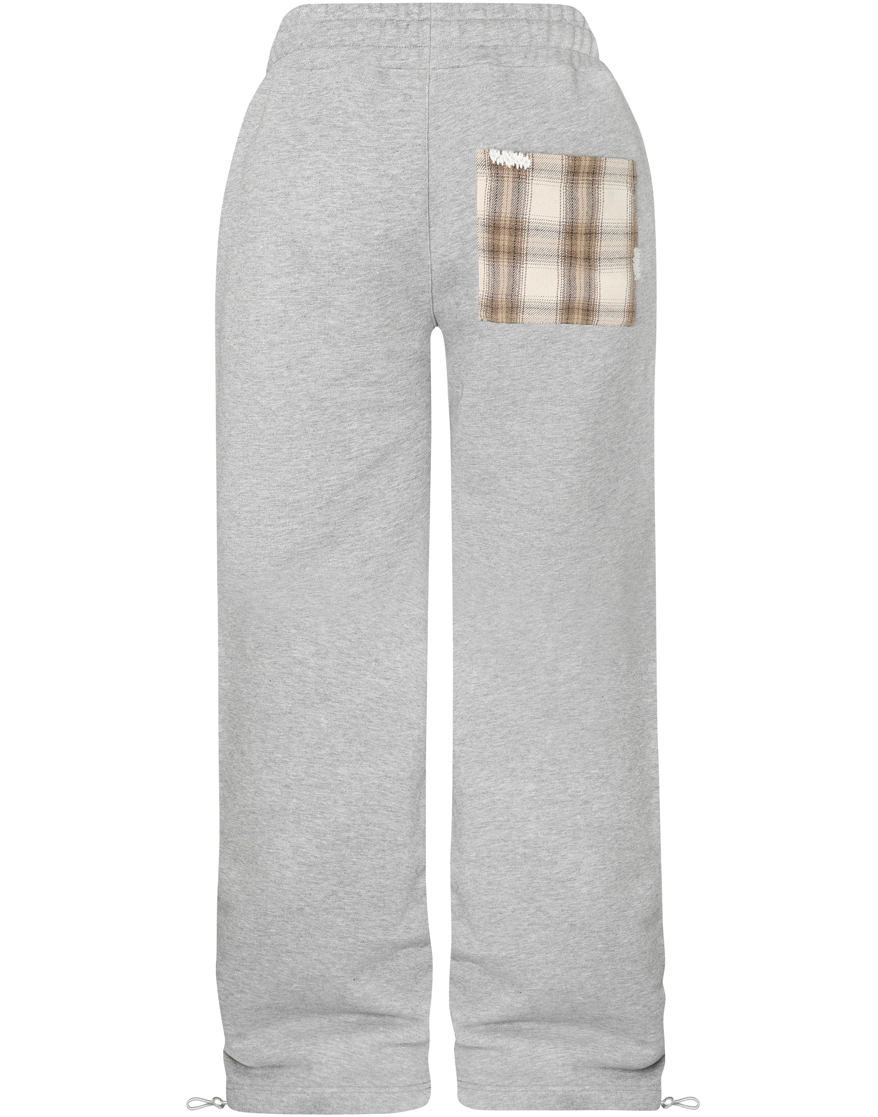 Original HIDDEN CULT® design. Crafted from premium extra-heavy 100% cotton in heather grey, these oversized wide-leg sweats feature a fitted waist, extended length, and distressed details throughout. Finished with embroidered “5⭑” logo patch, plaid accents, and a plaid back pocket.