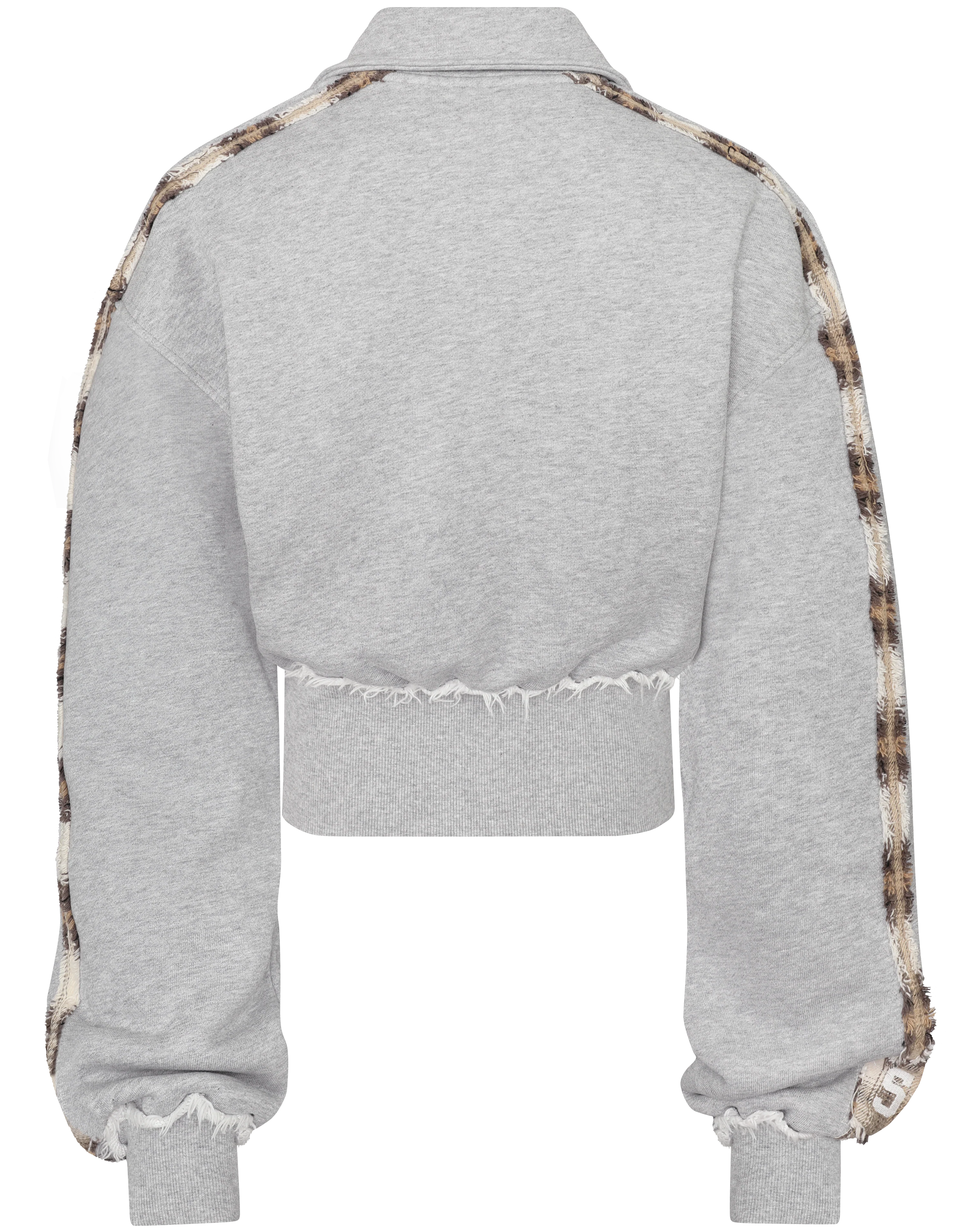 Original HIDDEN CULT® design. Crafted from premium extra-heavy 100% cotton in heather grey, this oversized zip track jacket features distressed plaid sleeve stripes, thick-stitched contrast pockets, and a cinched, stretchy waistband.