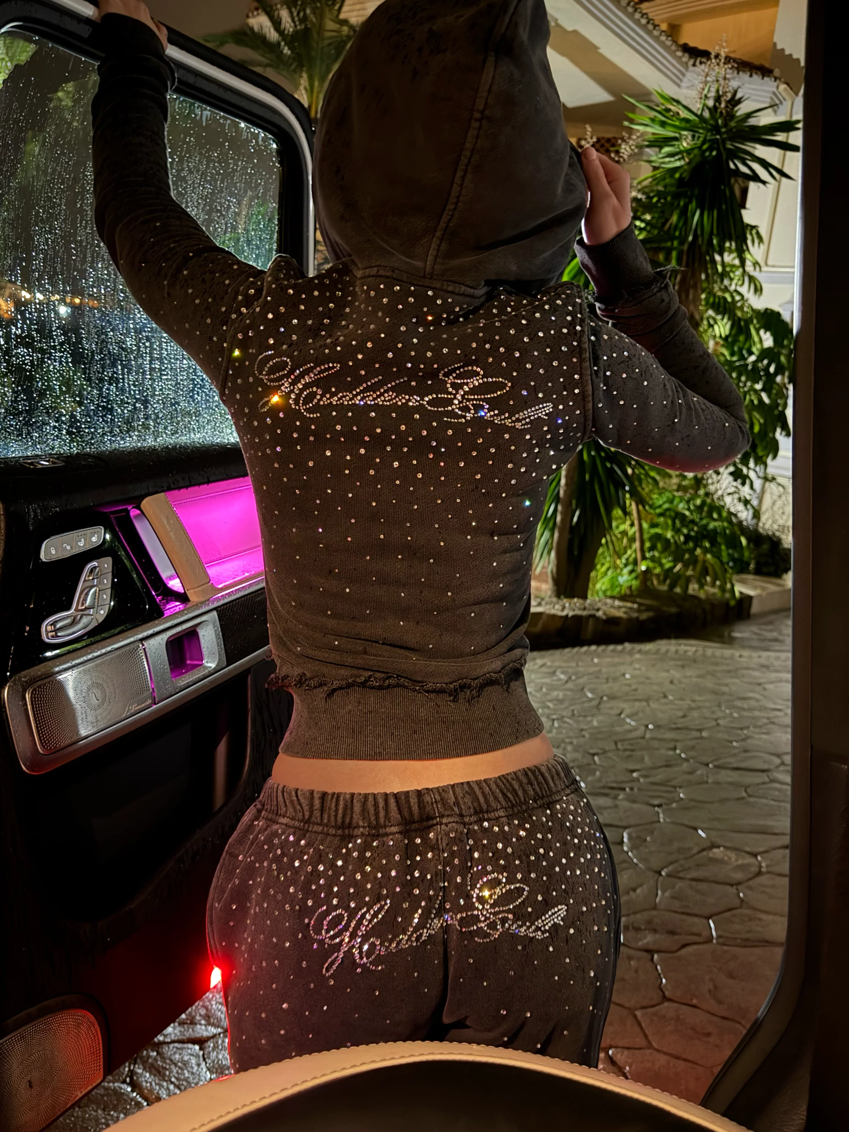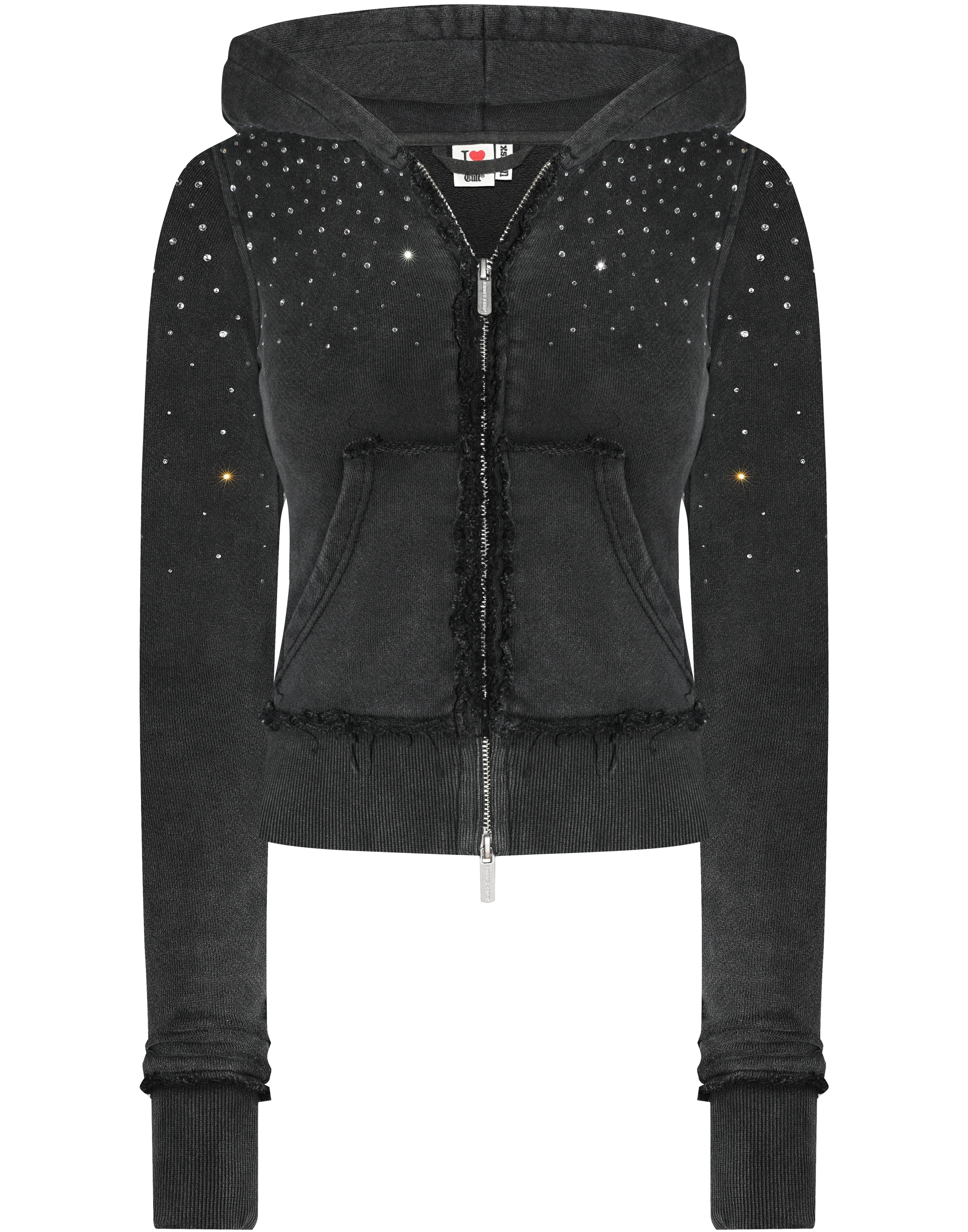 PRE-ORDER - Rhinestone Black Wash Fitted Zip Hoodie