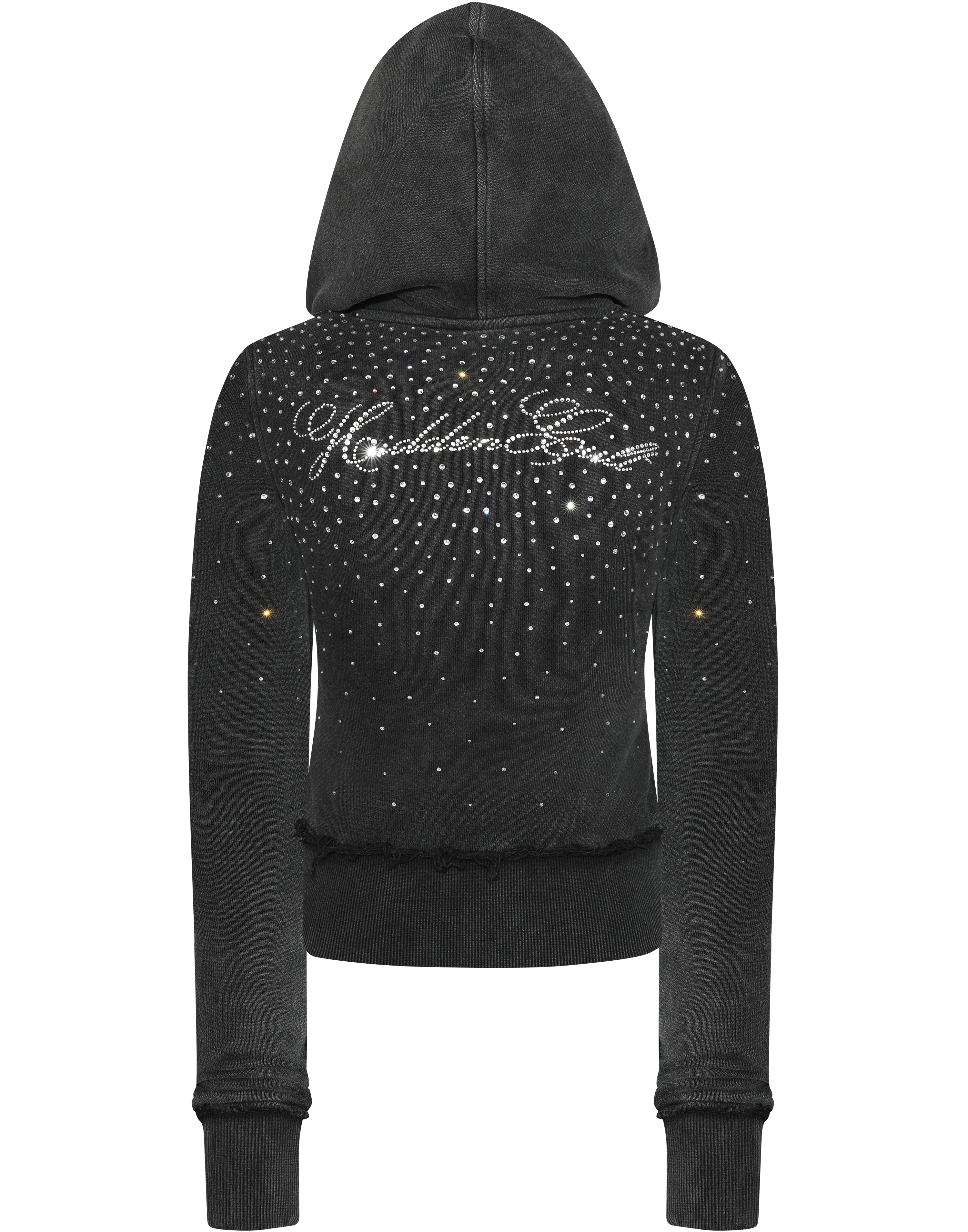 HIDDEN CULT® Rhinestone Black Wash Fitted Zip Hoodie
