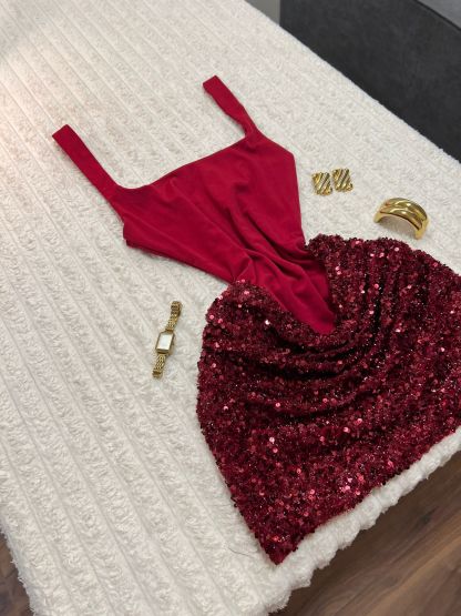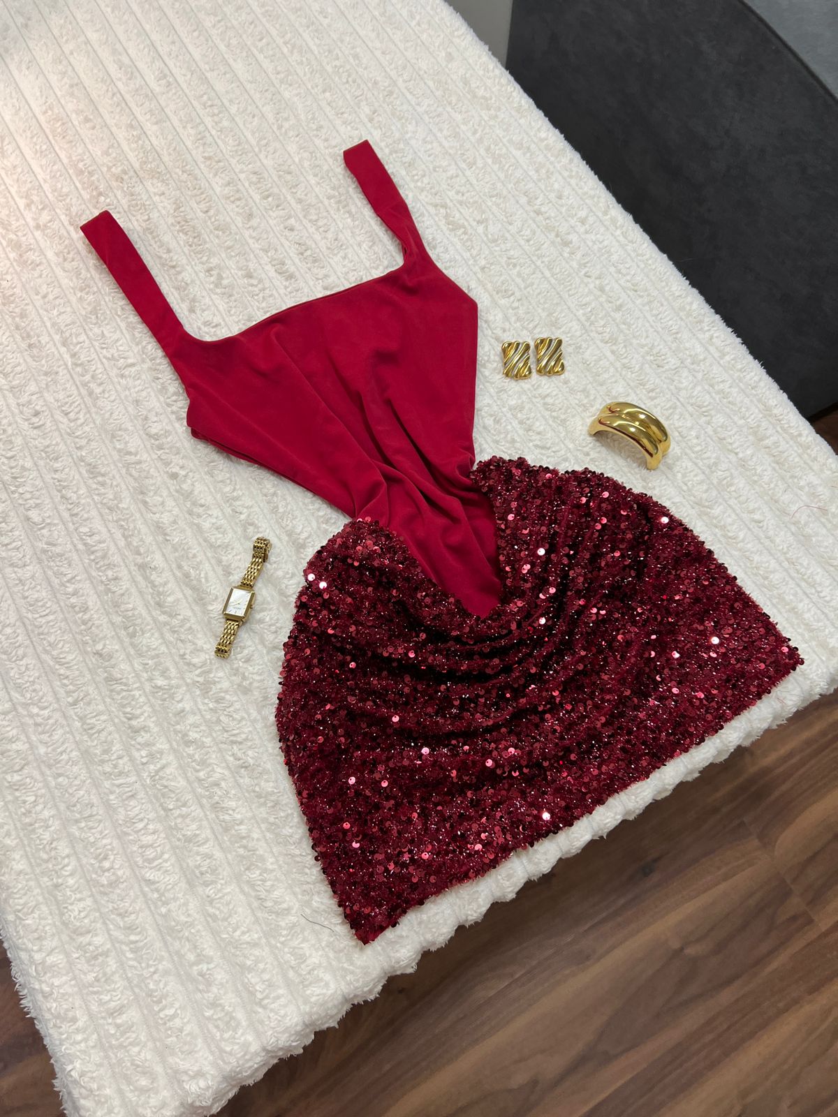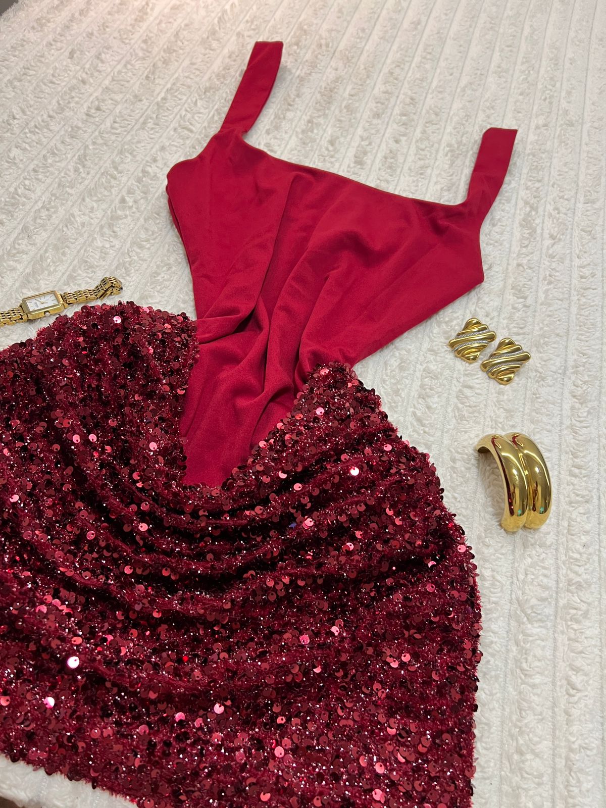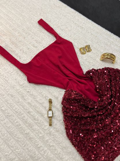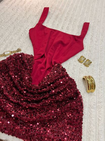 A dazzling mini dress designed to turn heads. Featuring shimmering sequins in a patchwork design, an off-shoulder neckline, and a backless silhouette, this body-hugging dress cinches the waist for a flawless, confident fit. Perfect for parties, clubs, and unforgettable nights out
