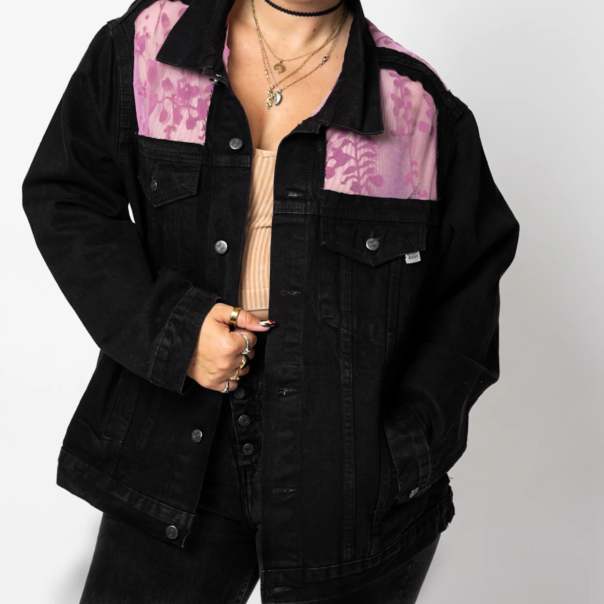 Inspired by Bella Swan's bedspread. Purple velvet florals. Light purple mesh. Blue, Black, or White Denim.