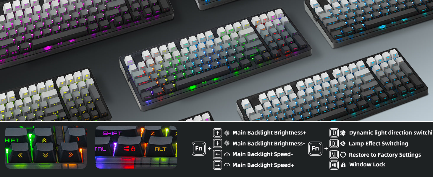- 【RGB Lighting with 22 Preset Modes】With Transparent case,You can enjoy vibrant RGB lighting with 22 preset modes, including south-facing LEDs and edge glow. Combined with high-transparency keycaps, the keyboard creates an immersive, stylish setup right out of the box.